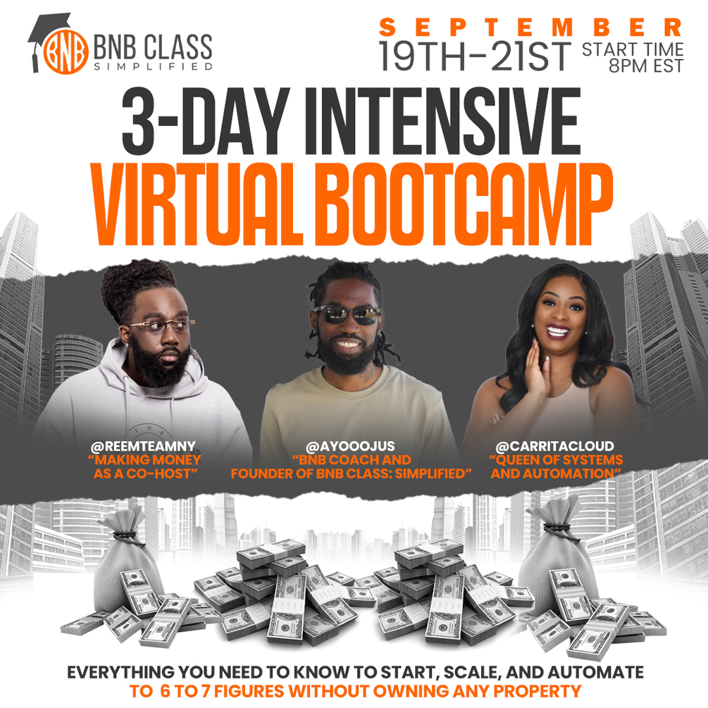 IN THIS 3-DAY INTENSIVE BOOTCAMP YOU WILL LEARN HOW TO START, AUTOMATE, AND SCALE TO 6 TO 7 FIGURES IN THE BNB BUSINESS.